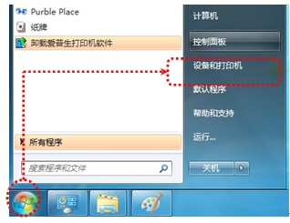 1.1 点击“开始”→“设备和打印机”,如图(2)。