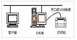 名词解释:主机端是直接与打印机相连的计算机,与主机端直接连接的这台打印机叫做共享打印机。客户端是没有连接打印机的计算机,通过网络将打印命令发送给主机端的共享打印机,从而实现打印。如图1。