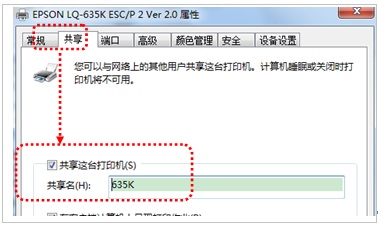 1.3 点击“共享”选项卡,将“共享这台打印机”打对勾,将共享名修改为数字,便于操作(如图4),点击应用和确定。