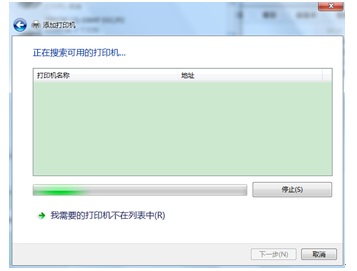 2.2 选择“添加网络、无线或Bluetooth打印机”,会自动搜索打印机列表,如图(7),若不能搜索到要共享的打印机,点击“我需要的打印机不在列表”。