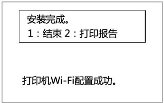 5.显示“安装完成”时,打印机Wi-Fi配置成功,按“1”结束操作,如图(6),此时面板Wi-Fi绿灯常亮。