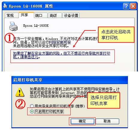 如果没有“共享这台打印机”选项,按照下图启动共享打印机,如图(2);
