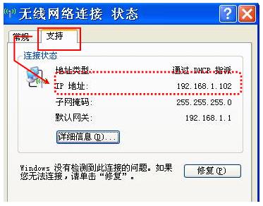 确认主机端IP地址,右键点击“网上邻居”选择“属性”,双击“本地连接”图标,点击“支持”,确认IP地址,如图(3);