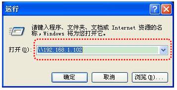 点击“开始”→“运行”,输入主机端IP地址“\\192.168.1.102”,然后点击“确定”,打开主机端共享,如图(4)。
