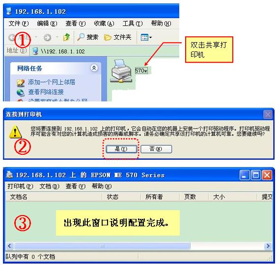 双击共享打印机图标,将自动配置共享,如图(5) 。